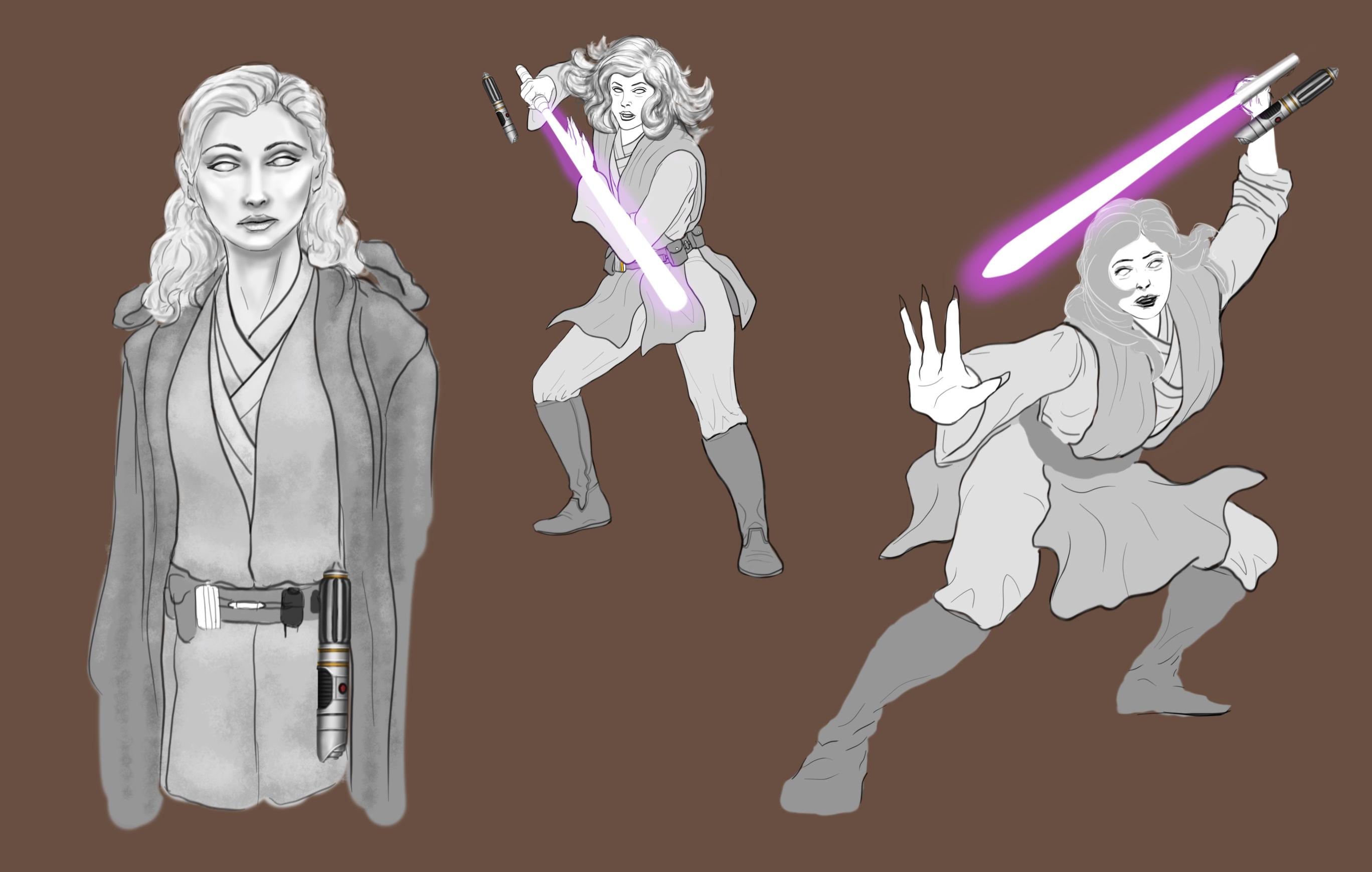 I’m pleased to present another original Lightsaber design completed in Blender 5.0.1. This saber design came from the concept art for Master Sy’Tara Vossic’s Jedi mentor, Kestae-Lon. In our Star Wars home game, Kestae-Lon was an Arkanian Jedi Master who walked the path of an Outer Rim wanderer. She was convinced that the place of a Jedi was out in the galaxy not shut away in a temple. As such, she followed the Will of the Force wherever it led her, often to cross the paths of those who needed her help the most.