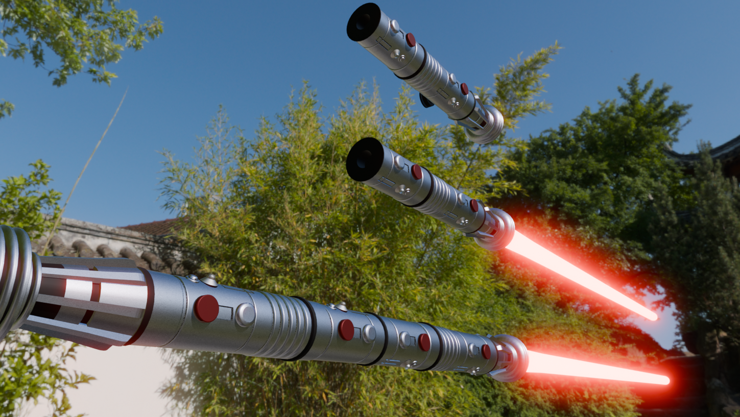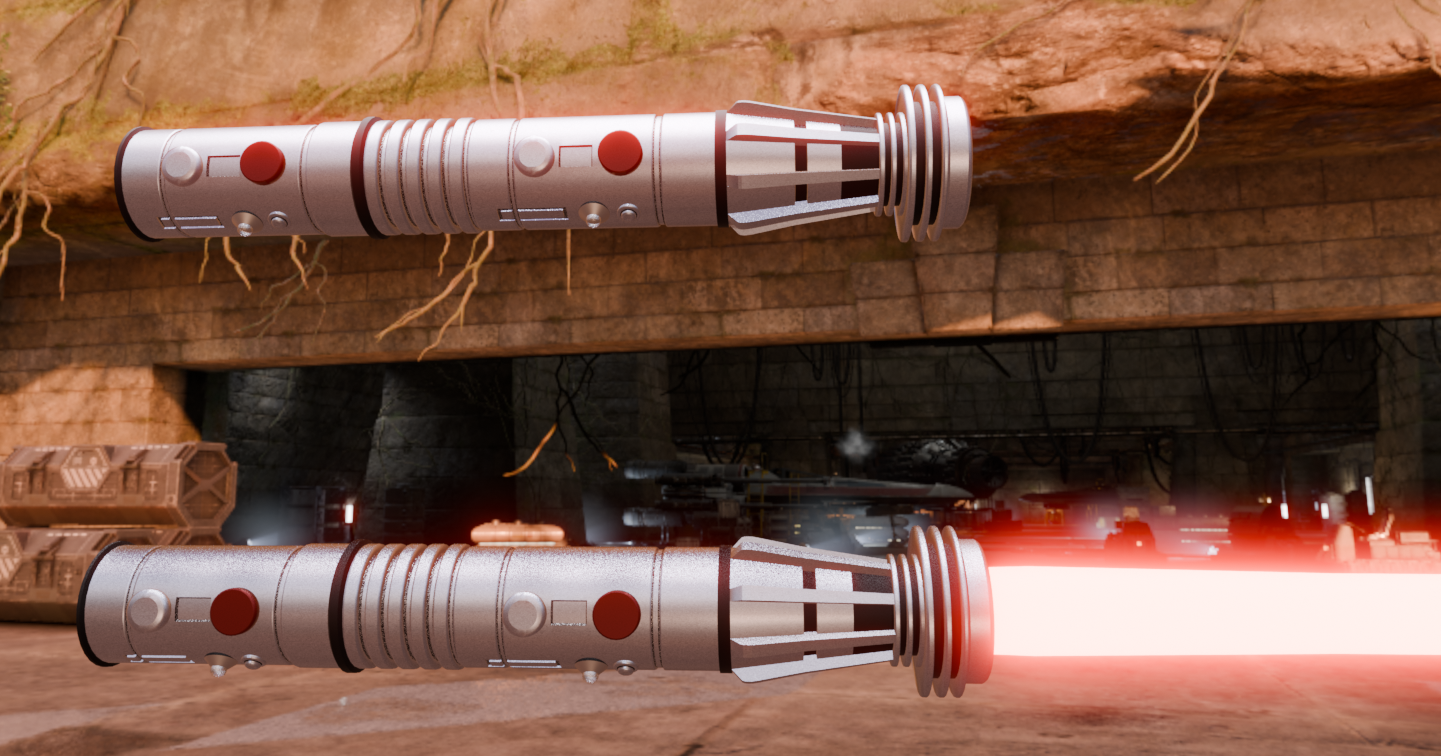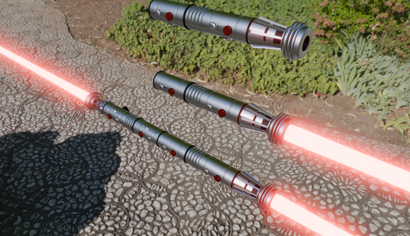 I’ve been doing a lot of work in Blender recently creating my original Lightsaber designs posted here previously. Then I had a sudden impulse to attempt to recreate the iconic Lightsabers from the movies. I present to you Darth Maul’s Lightsaber staff from Episode 1: The Phantom Menace. I was so pleased with the result that I am going to do as many of the Lightsabers from the movies as I can. See keep an eye out for more.