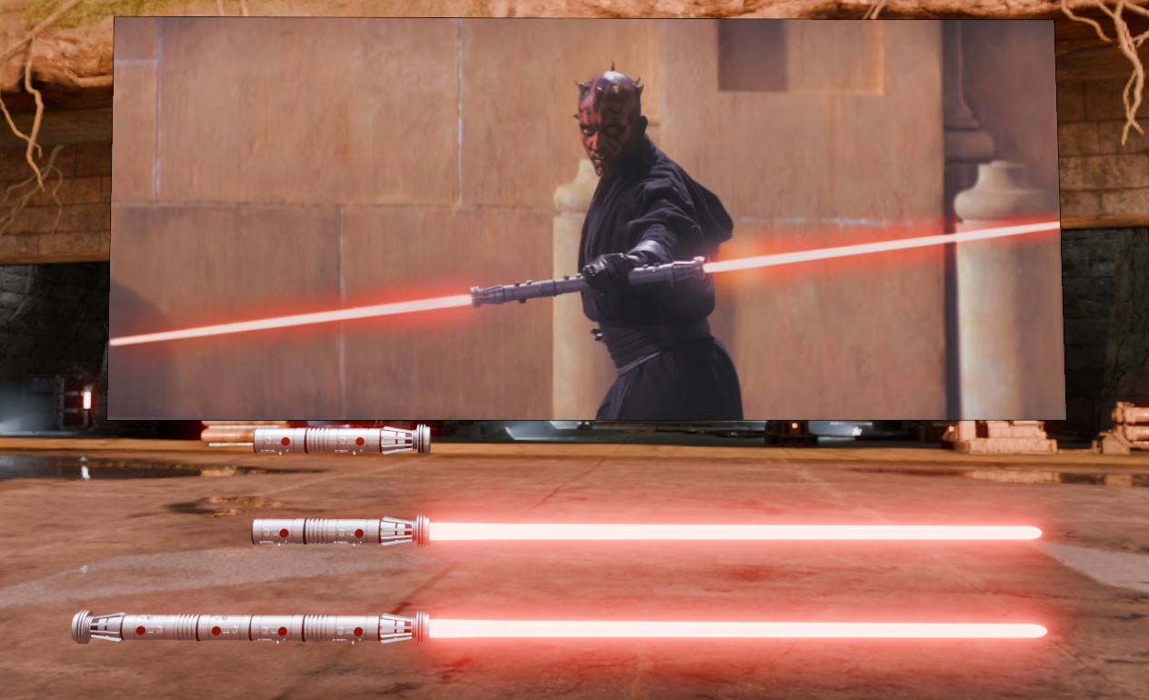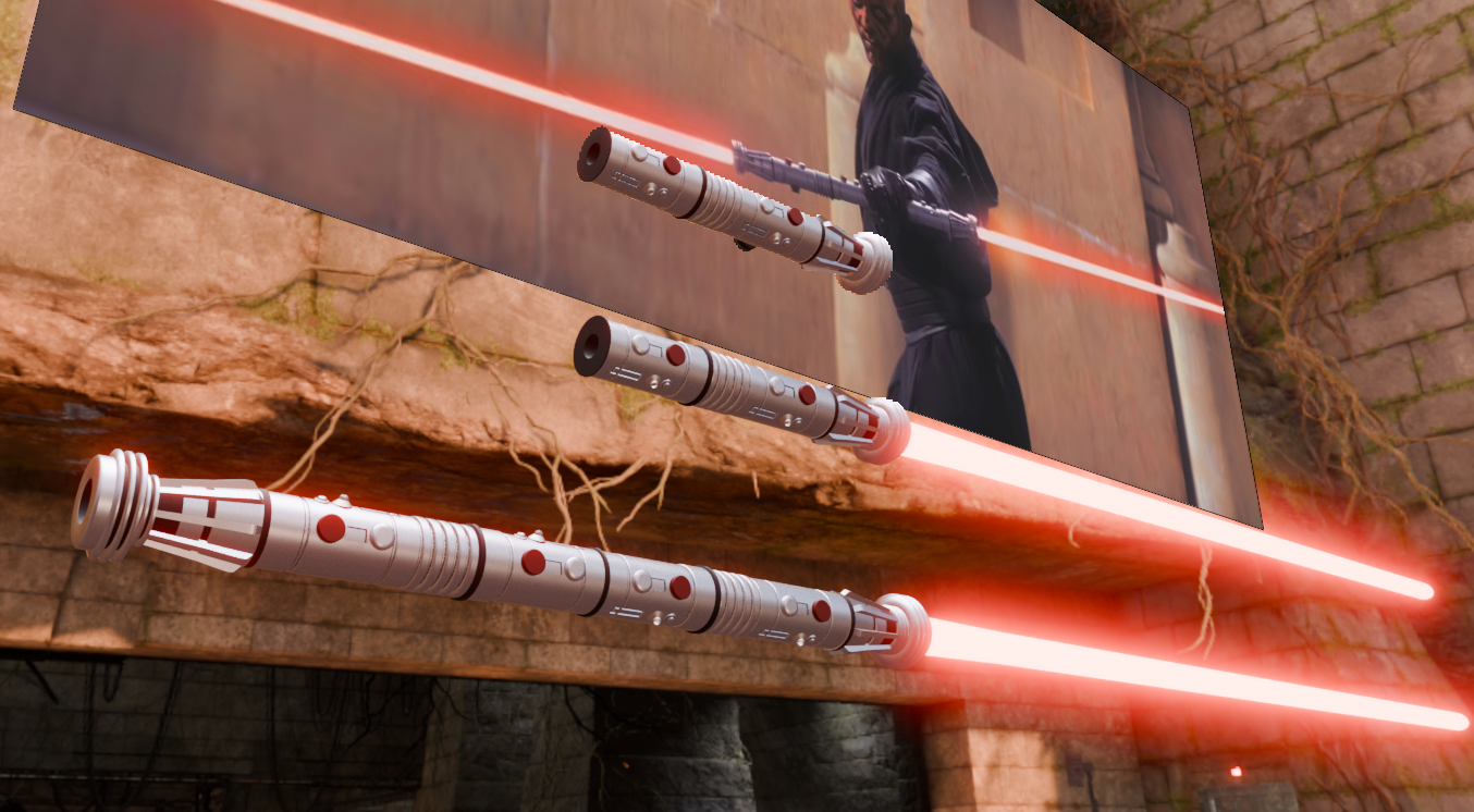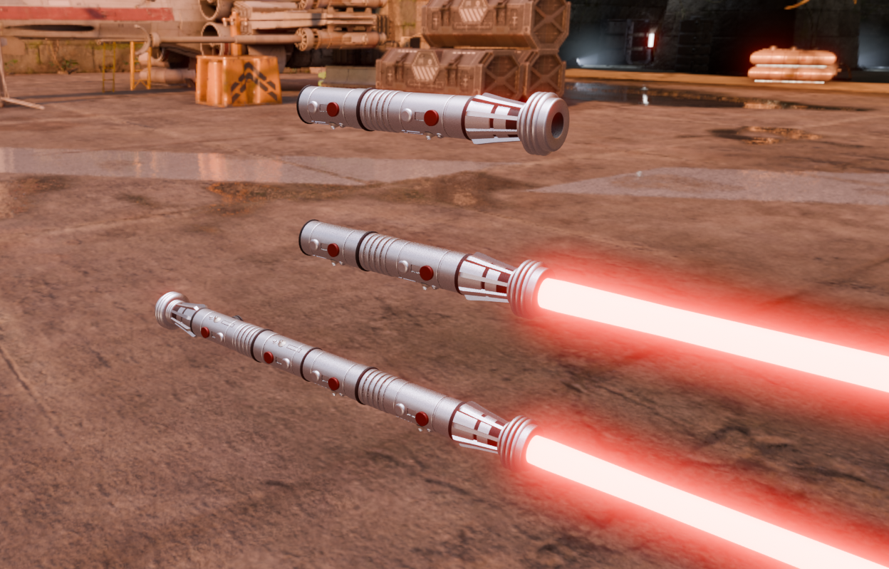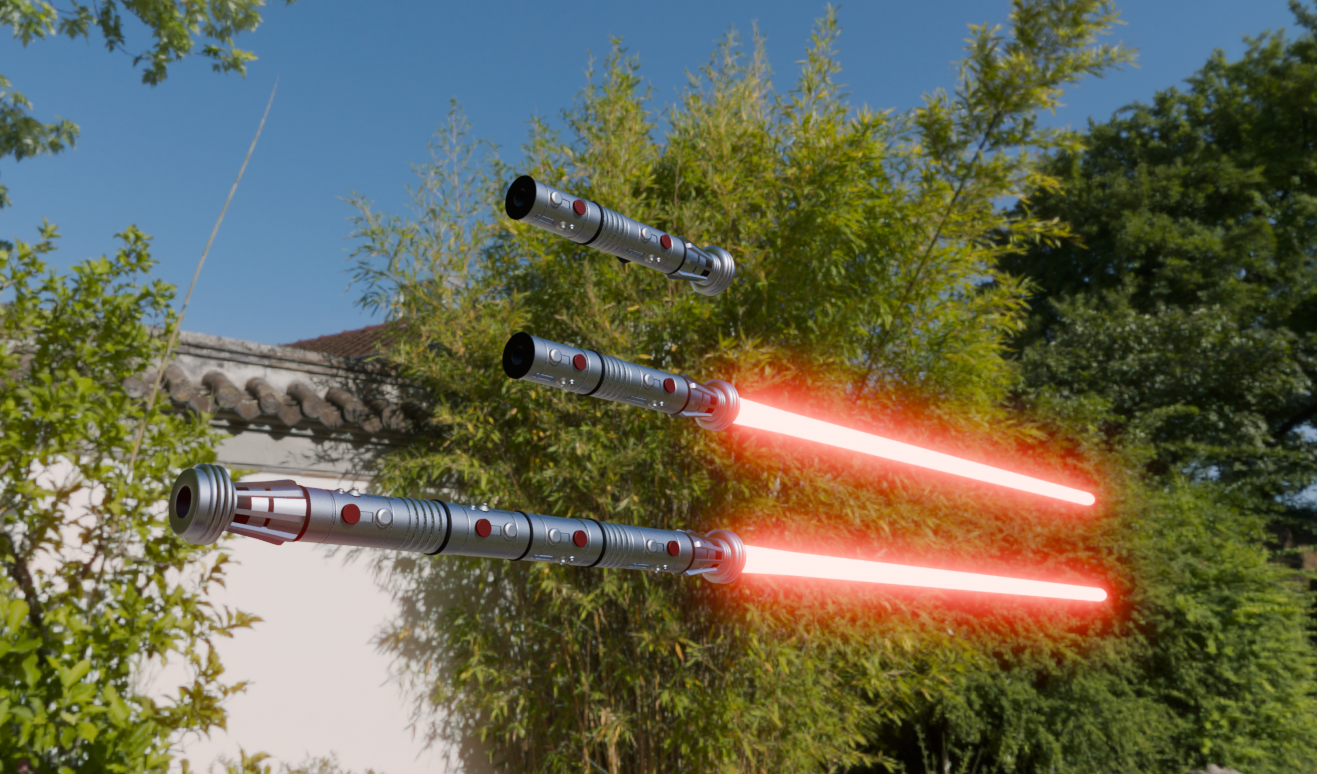 I’ve been doing a lot of work in Blender recently creating my original Lightsaber designs posted here previously. Then I had a sudden impulse to attempt to recreate the iconic Lightsabers from the movies. I present to you Darth Maul’s Lightsaber staff from Episode 1: The Phantom Menace. I was so pleased with the result that I am going to do as many of the Lightsabers from the movies as I can. See keep an eye out for more.